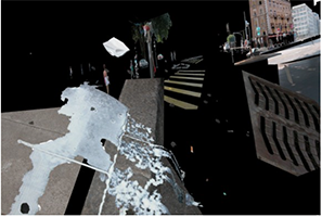 ![]() ![]() ![]() Circus setzt sich mit der Konstruktion und Wahrnehmung von Raum auseinander. Die Videoarbeit von Collectif_Fact, bestehend aus einer Doppelprojektion übers Eck, basiert auf Fotos des gleichnamigen belebten Platzes in Genf. Die drei KünstlerInnen fotografierten ausführlich den Platz und animierten die Fotos zu einem wogenden Spiel von Bildern, welche die Stadt in Bewegung setzen, sie zerlegen und wieder neu konstruieren. Die Projektion pulverisiert jede Form einer statisch-fotografischen Darstellung und nähert sich so der Dynamik des Städtischen und der Art, wie wir selbst in Wirklichkeit wahrnehmen: Unterwegs und mit Augen ausgestattet, die unserem Hirn keinen kontinuierlichen und homogenen Film, sondern Millionen von Kleinst-Eindrücken übermitteln. (Text collectif_fact) Die Künstlergruppe collectif_fact besteht aus Annelore Schneider und Claude Piguet (bis 2009 auch Swann Thommen). Collectif_fact leben und arbeiten in Genf. ![]() ![]()