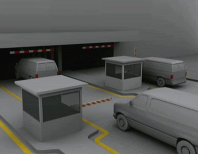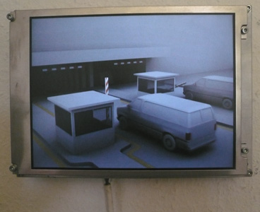 ![]() ![]() The "loading" video shows the entrance of an underground car park. This space is built in a schematized way, close to the cardboard model. Identical vans continuously enter the building. Only the signposting elements distinguish themselves from the surroundings by their colours. The action creates a tension linked to the expectation of "an event", while its repetitive side tends to make the scene absurd and disconnect it from its disturbing referent. Therefore, while reducing elements to a minimum, we provoke a feeling of frustration between what happens and what could occur. (Text collectif_fact) The group of artists, collectif_fact comprises Annelore Schneider and Claude Piguet (and Swann Thommen up to 2009). Collectif_fact live and work in Geneva.