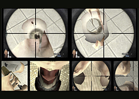 ![]() ![]() ![]() Between 1999 and 2004 Jodi deconstructed a range of commercial ego-shooter games. The result was the work complexes “untitled games” (1999-2001), “Wolfenstein Version” (2001), “Jet Set Willy Variations” (2002) and “Max Payne Cheats Only” (2004). In “Max Payne Cheats Only”, Jodi takes over the tough third-person shooter Max Payne and uses the tricks built into the game to create for players, who are not aware of what is going on, a continuous cycle that runs through the 3D world of the game and seems absurd. The physical and spatial limits are lifted, the figures in the game race through space like crazed androids. In leaving the realistic 3D graphics of the game in place for its Sisyphean effects, Jodi deconstructs both the heroic pathos and the 3D spatial illusion. To quote Jodi: “We wanted to do something that was non-aesthetically ours. No scary black blobs on jumping white backgrounds, but trying to achieve the impossible - an abstraction within the aesthetic of a game which is already set." Unlike “untitled games”, “Max Payne Cheats Only” does not offer the viewer any interactive navigation through the world of images, but presents the work as 2-channel video on DVD. It is shown in a 5-copy version on 2 monitors or is presented as a double projection. In addition to the high-resolution version of the work, Jodi offers a website with network videos of “Max Payne Cheats Only” that can be accessed free of charge. The artists’ collective Jodi consists of Joan Heemskerk (*1968 in Kaatsheuvel, The Netherlands) and Dirk Paesmans (*1965 in Brussels, Belgium). They live and work in Dordrecht in the Netherlands.