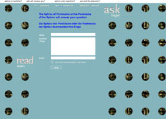 ![]() ![]() ![]() ![]() She who "sphinxes" answers questions, or rather: answers to them. Thus is the resolute declaration of the Sphinx of Pontresina concerning her own actions. But whose actions are explained? Those of the machine, which answers – in the baroque poetic form of the sestina at that – or the actions of the author Birgit Kempker, the original creator of the project? The Sphinx of Pontresina can be reached via the net: every visitor is encouraged to enter questions, anonymously or revealing their identity, and may expect a direct answer. Kempker distorted and multiplied her own voice using the co-authorship of several machines, the sestina-producing alter-ego as well as several digital voices – thus programming a mixture of direct communication and literary freedom. Seit Herbst 2004 beantwortete die Sphinx über 800 Fragen. Birgit Kempker: prose, essays, radio plays, art texts, exhibitions, lectures. Professor of Language and Image at the Basel School of Design and since 1990, responsible for setting up and supervising the Language/Literature Department at the F+F School of Art, Zurich. ![]() ![]()